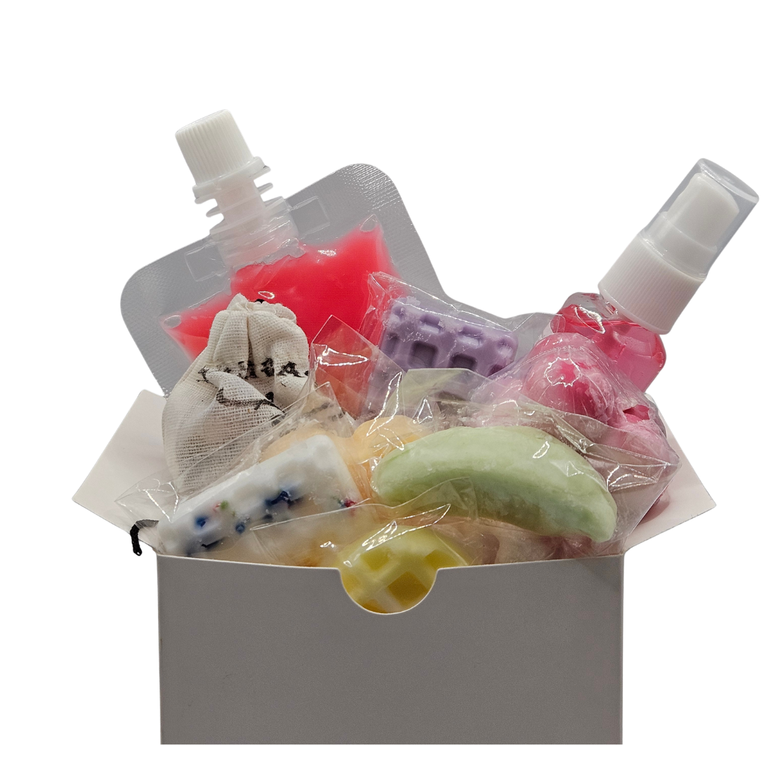 Dive into the unknown and discover new favorites with our mystery sample bundles. Each bundle is a unique experience, packed with 4 to 5 generously sized samples of our limited edition scents and products. From rich, comforting aromas to fresh, vibrant notes, you'll get to explore a curated selection of what makes our showcase so special.